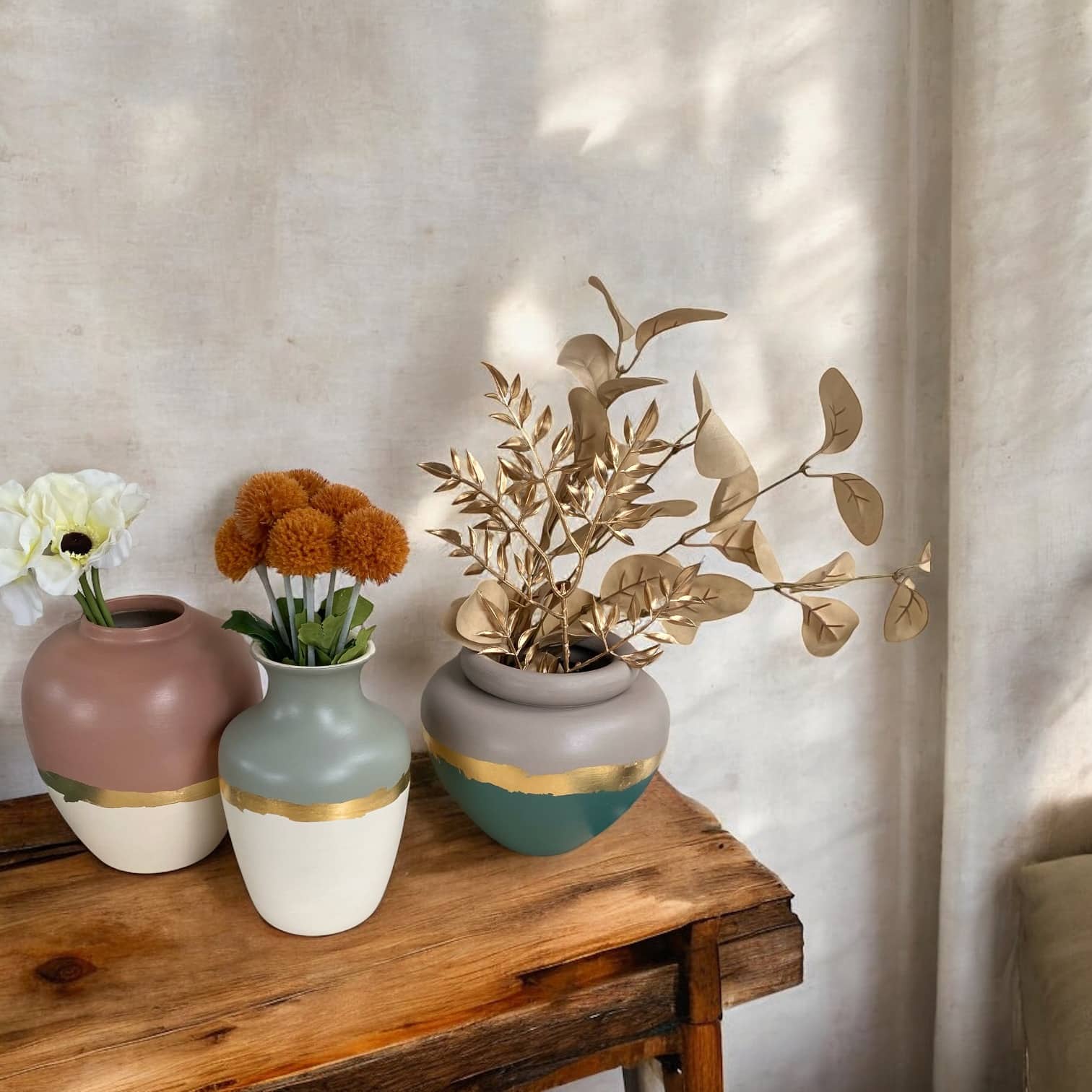 - Objets déco relookés (vases feuille d’or, cadres, miroirs…)