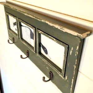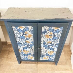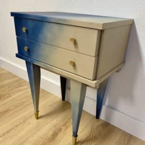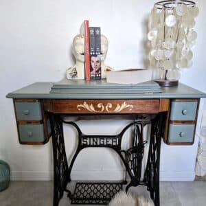Commode en bois verte kaki et vert de gris – feuille d’or