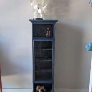 Vitrine murale vitrée en bois massif gris effet vieilli