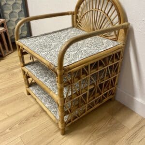 Table console d’encoignure en rotin, sable et tissu eucalyptus