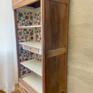 Petit meuble de rangement art déco avec niche en bois et terracotta