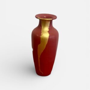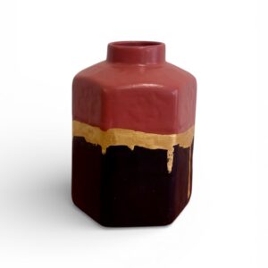 Vase décoratif relooké framboise et feuille d’or – Pièce unique artisanale