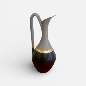 Grand vase pichet relooké noir et gris – Liseré en feuille d’or
