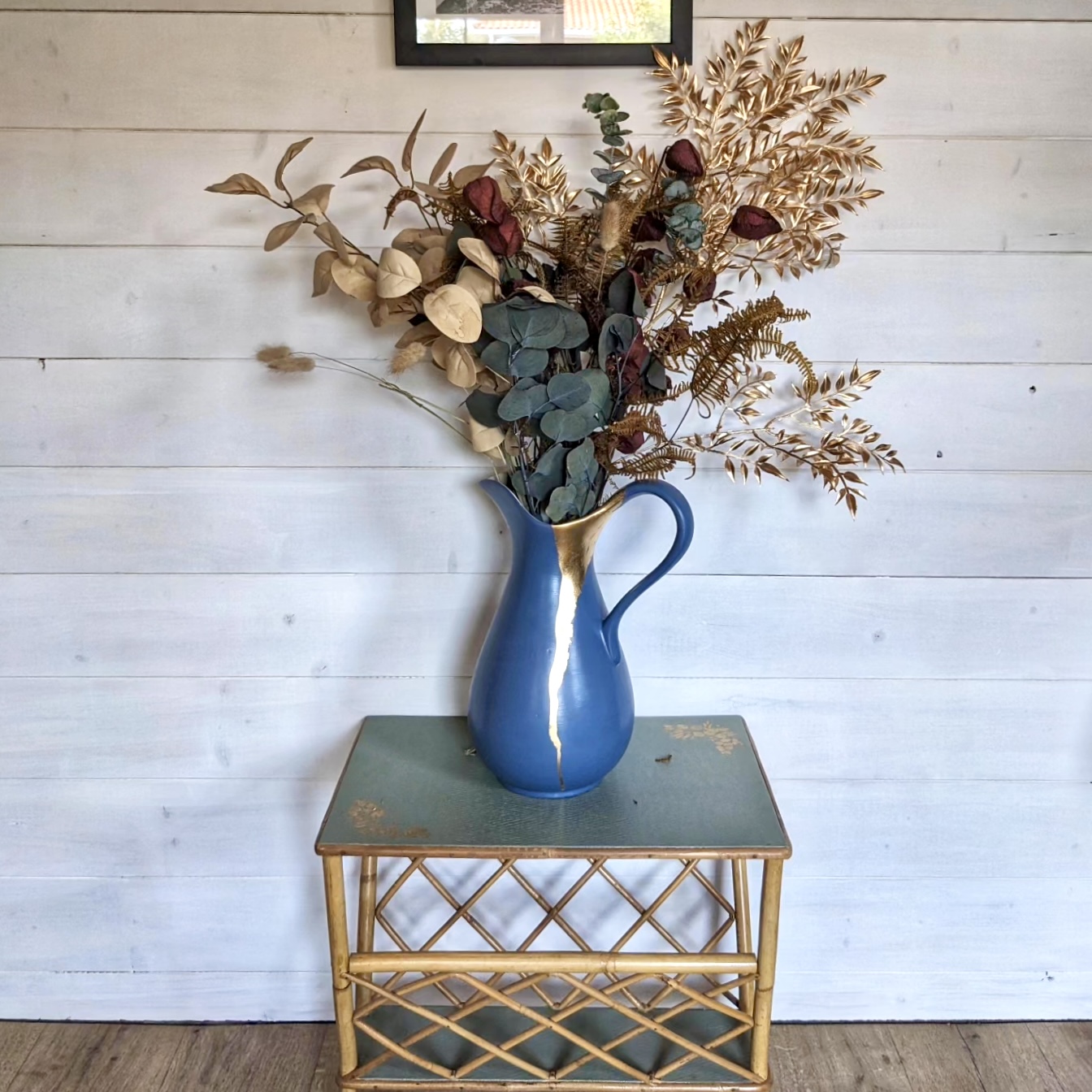 Ce porte-revue en rotin allie le charme du vintage à la douceur du vert sauge. Sa tablette peinte à la main ajoute une touche pratique et décorative, idéale pour une déco bohème et chaleureuse.