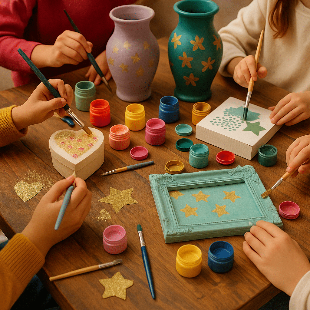 Cet atelier est conçu pour permettre aux enfants (dès 8 ans) et aux duos parent–enfant (dès 6 ans) de découvrir la peinture décorative et de relooker un petit objet déco dans un cadre calme et bienveillant.