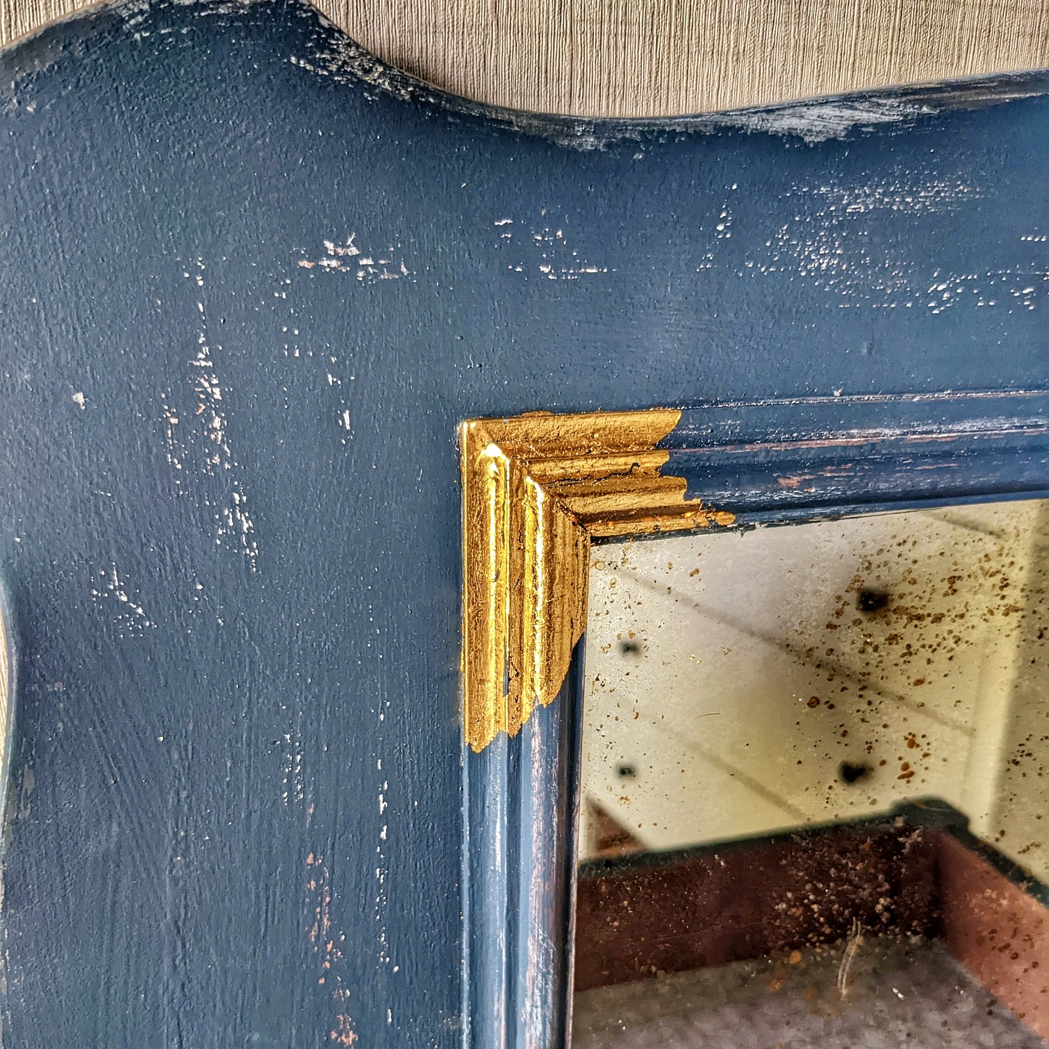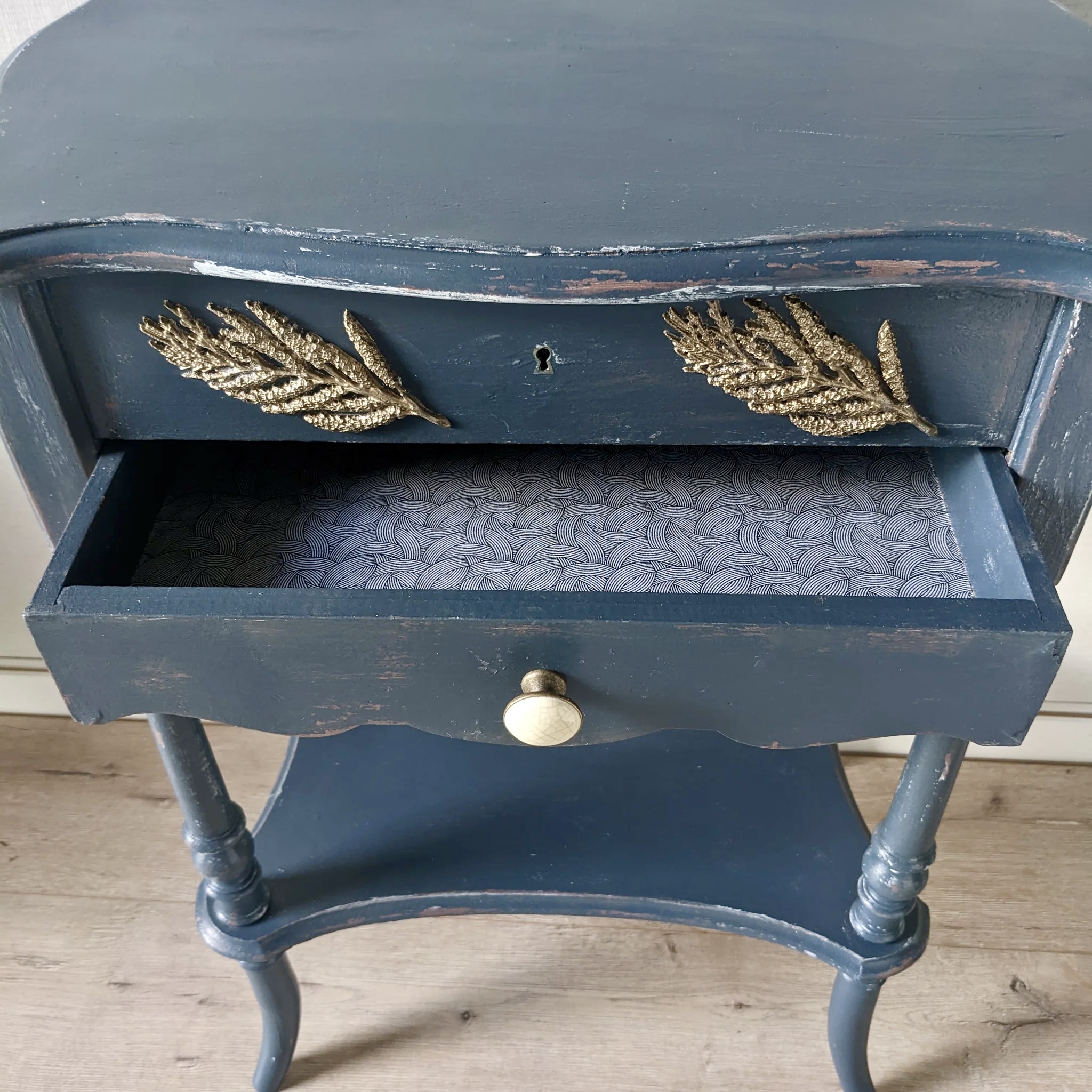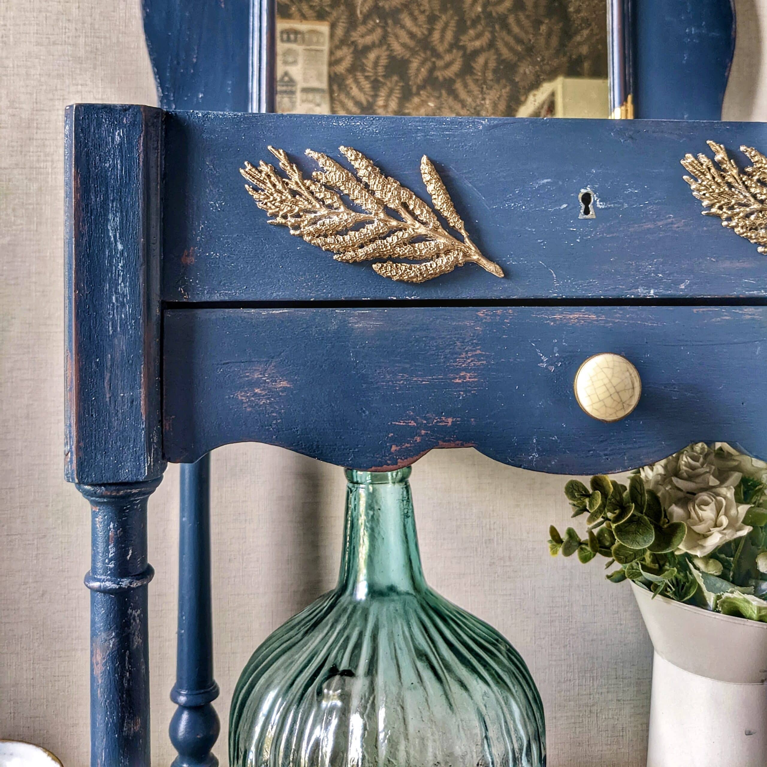 Coiffeuse vintage années 20 bleue nuit relookée – Meuble artisanal au charme rétro