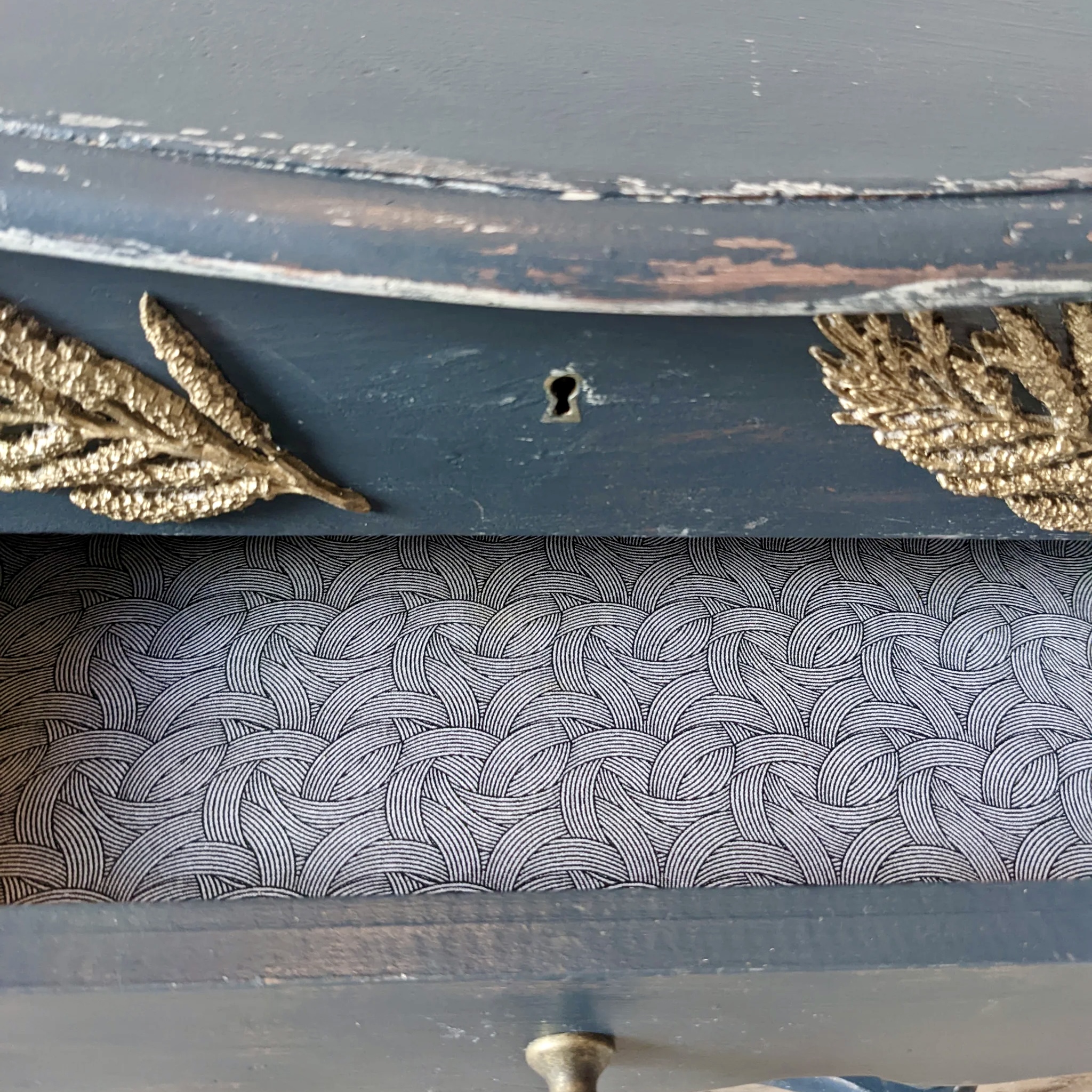 Plonge dans l’élégance intemporelle avec cette coiffeuse vintage relookée des années 1920. Entièrement rénovée à la main dans mon atelier près de Toulouse, elle révèle une structure en bois noble, une peinture bleue nuit satinée, et surtout un compartiment secret qui s’ouvre pour dévoiler un miroir intégré, idéal pour les rituels beauté du quotidien.