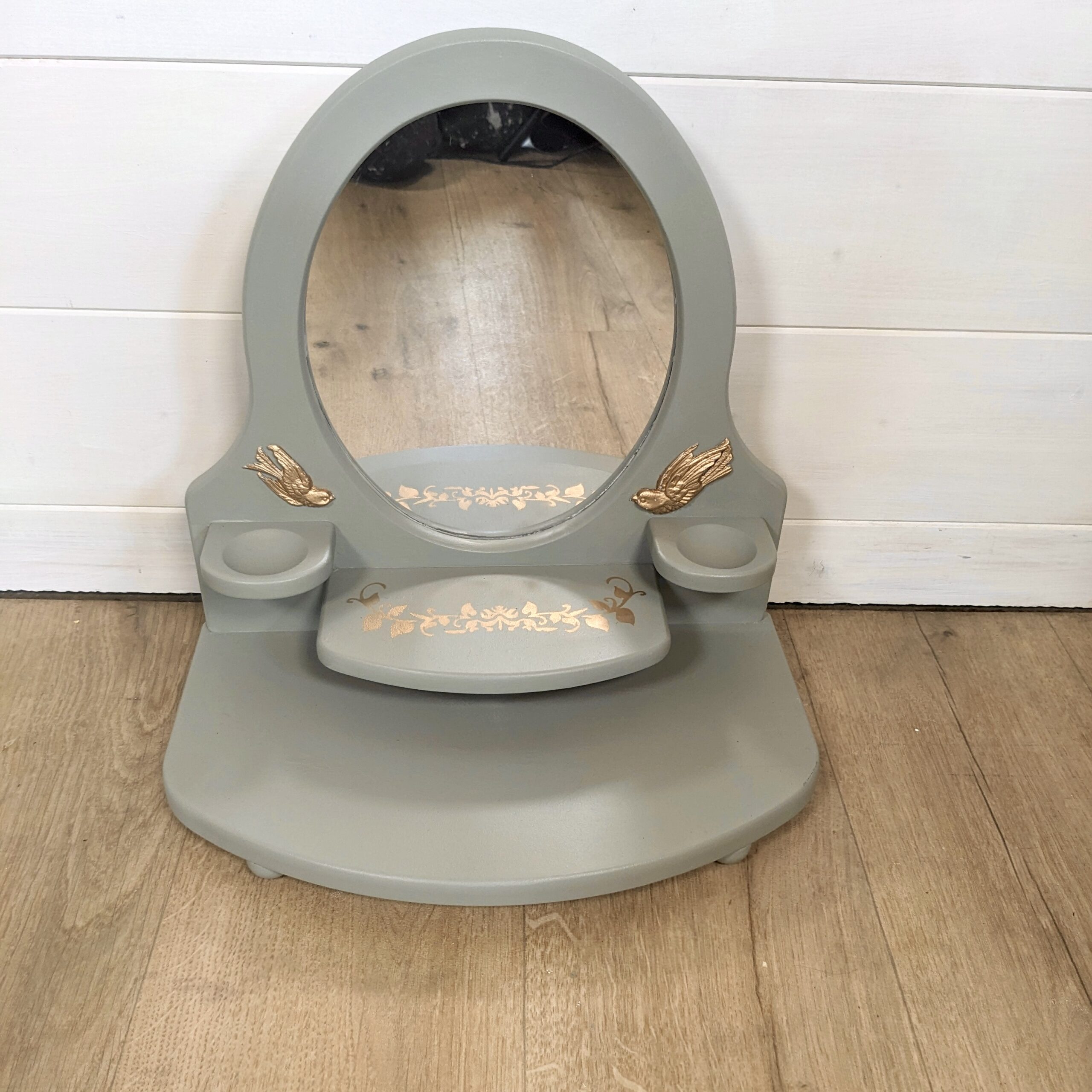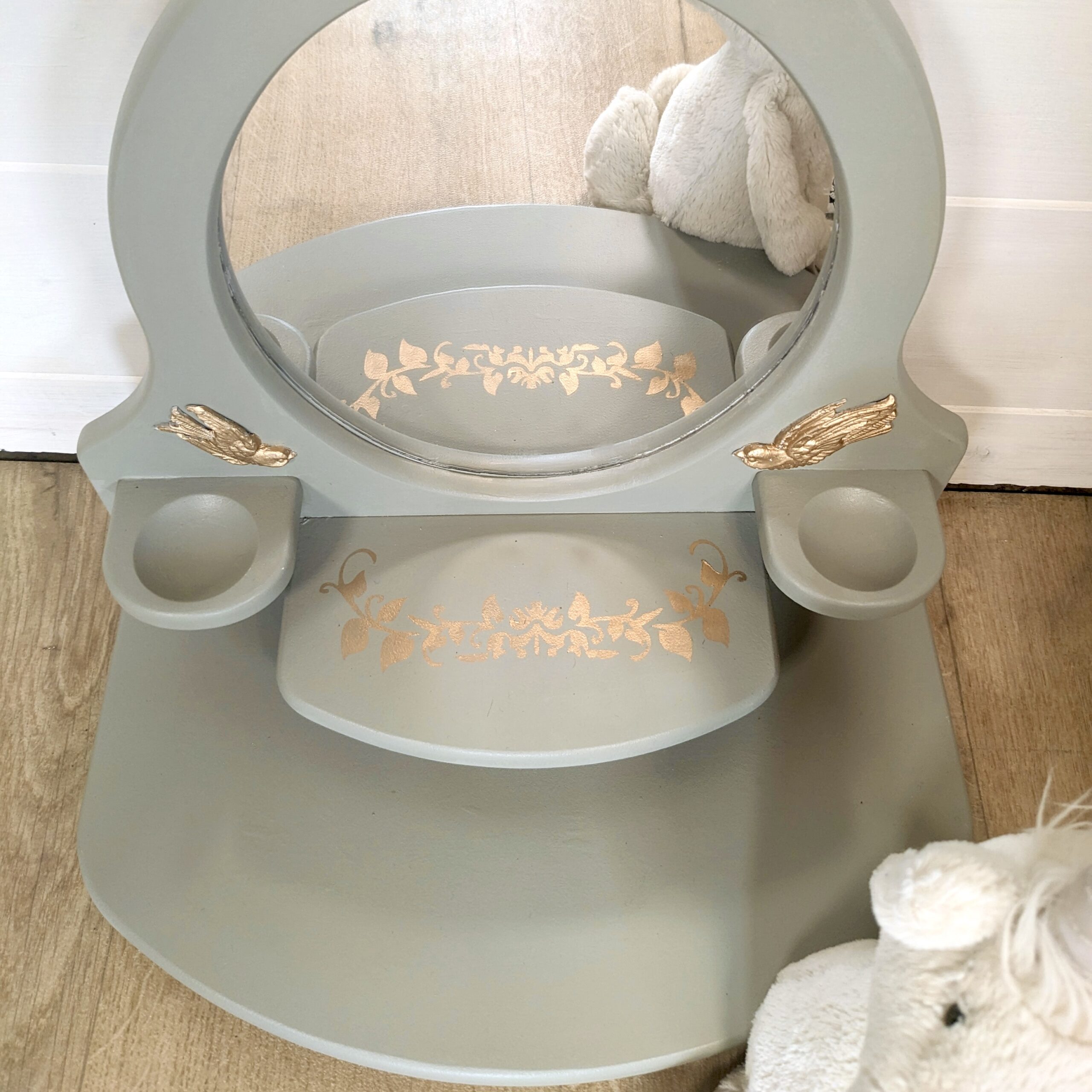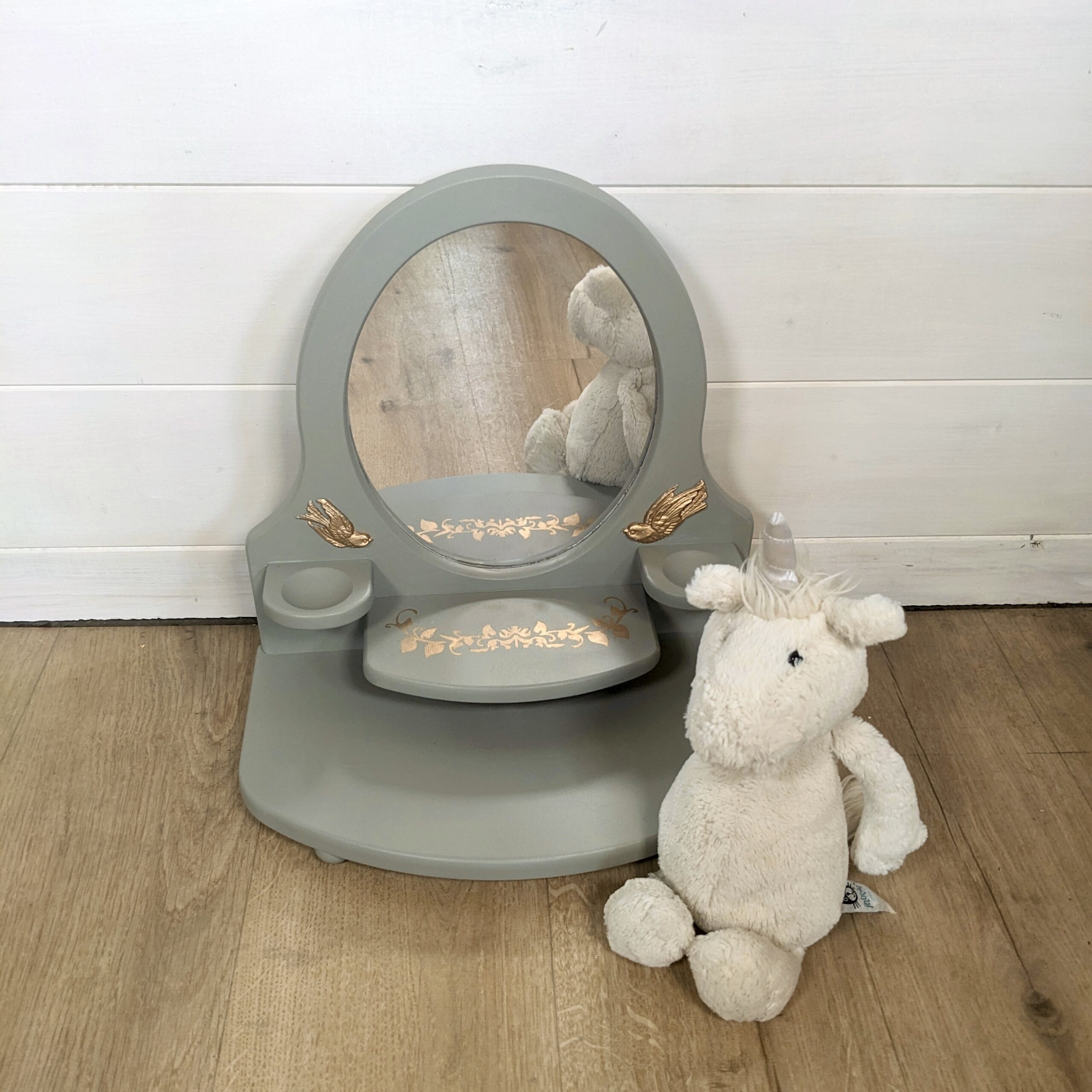 Coiffeuse pour enfants verte et oiseaux dorés