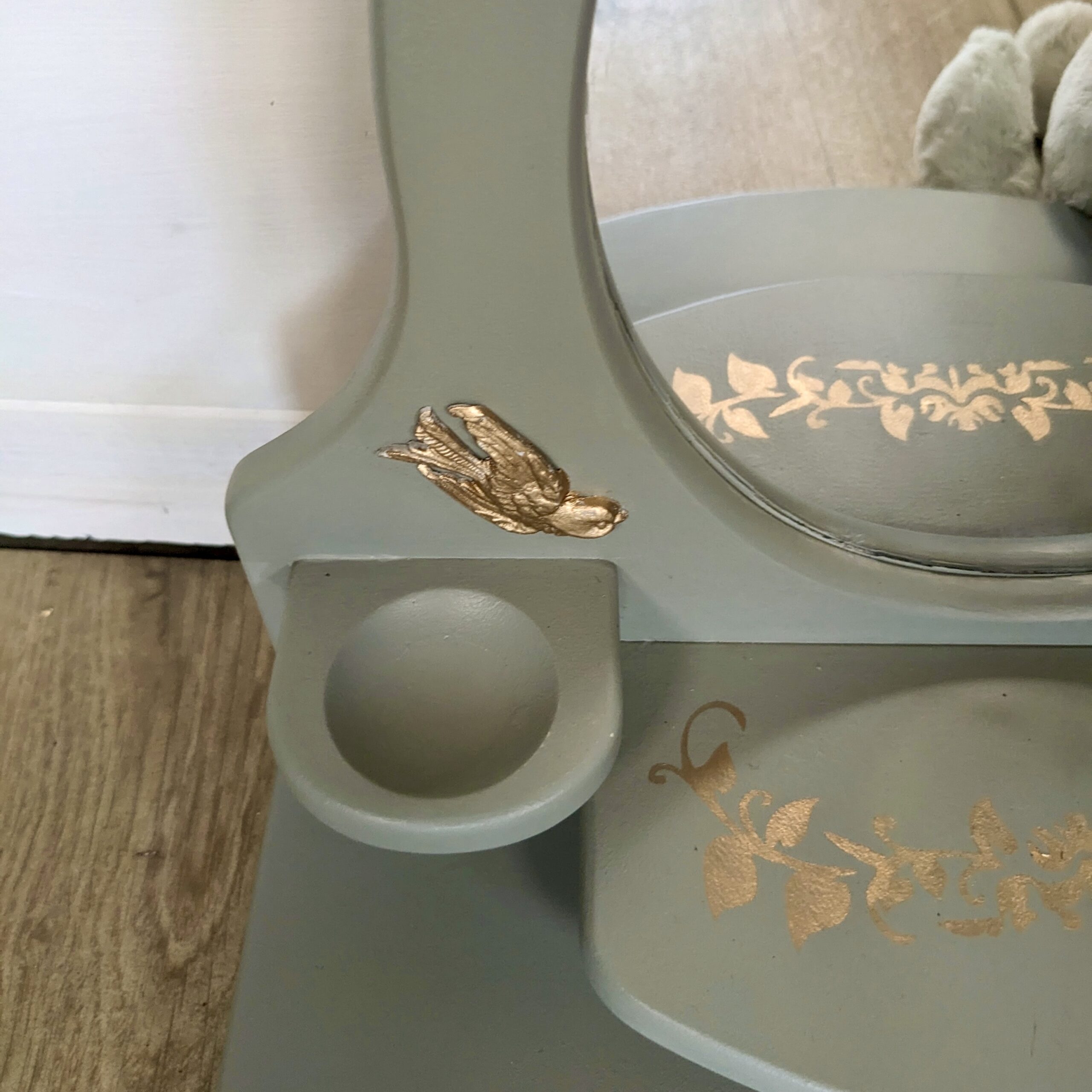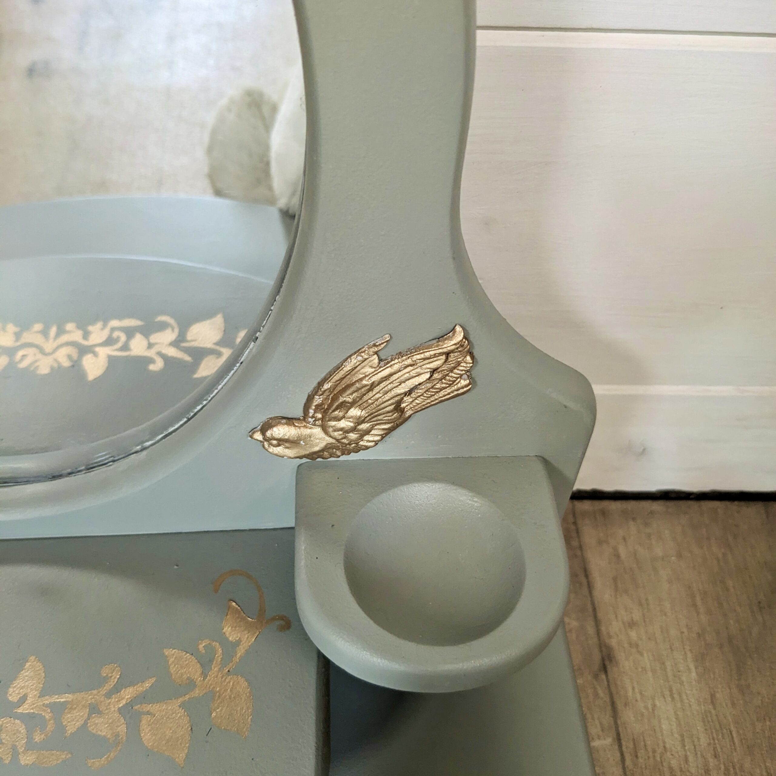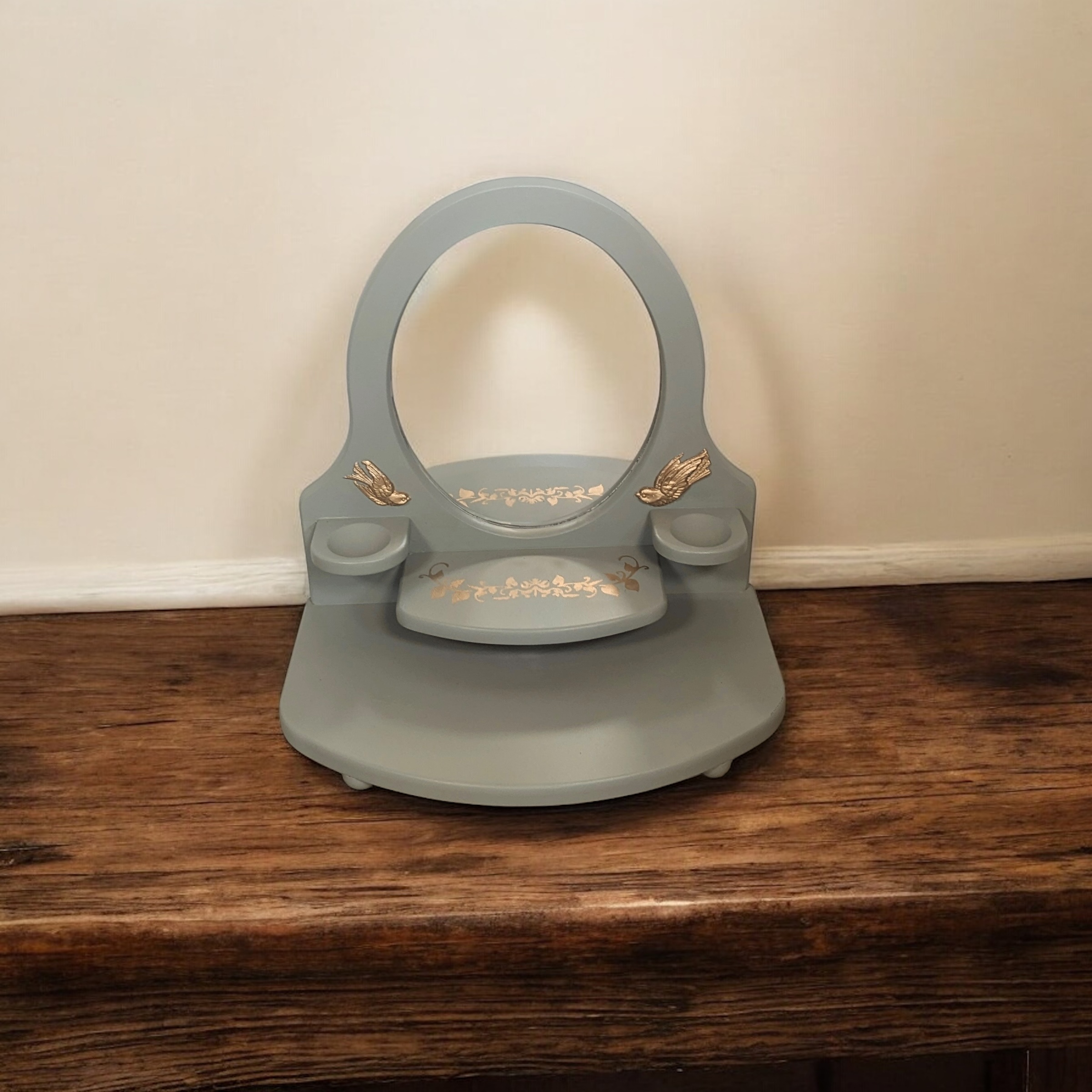 Coiffeuse pour enfants verte et oiseaux dorés