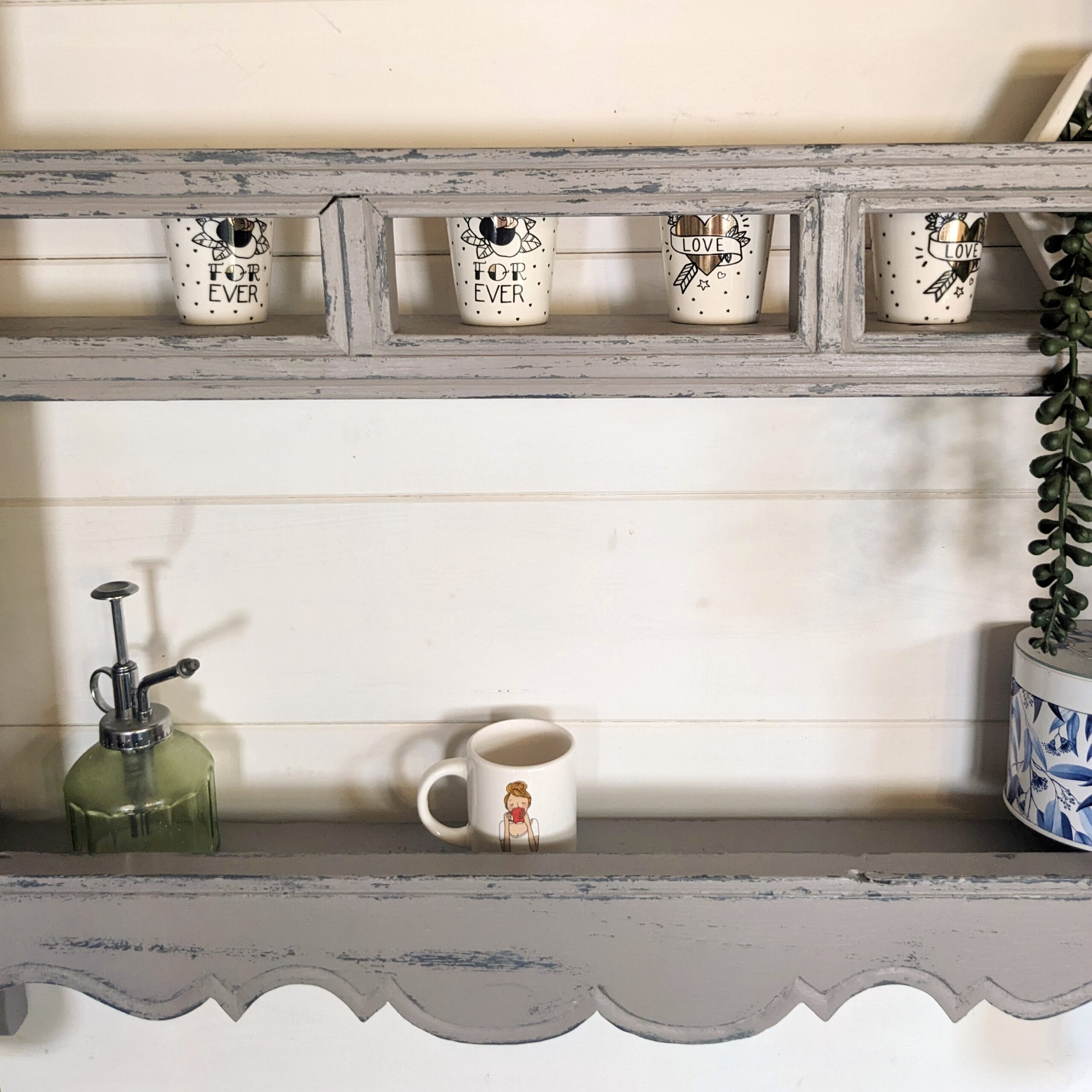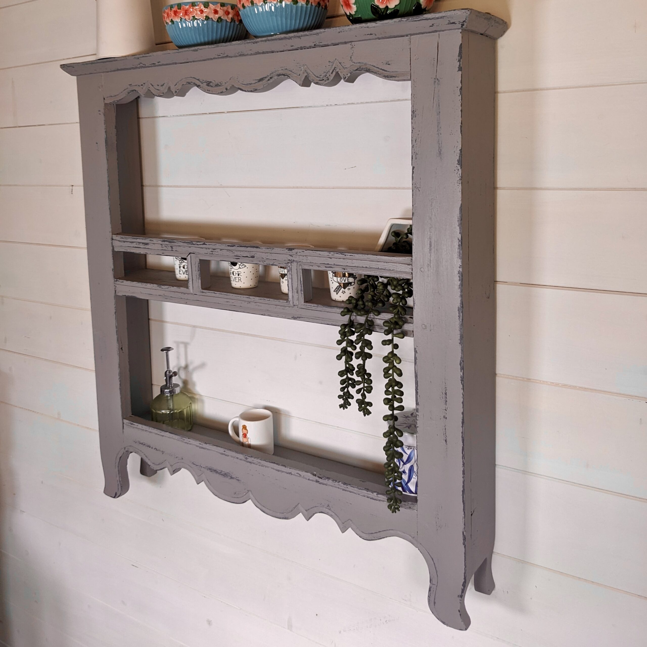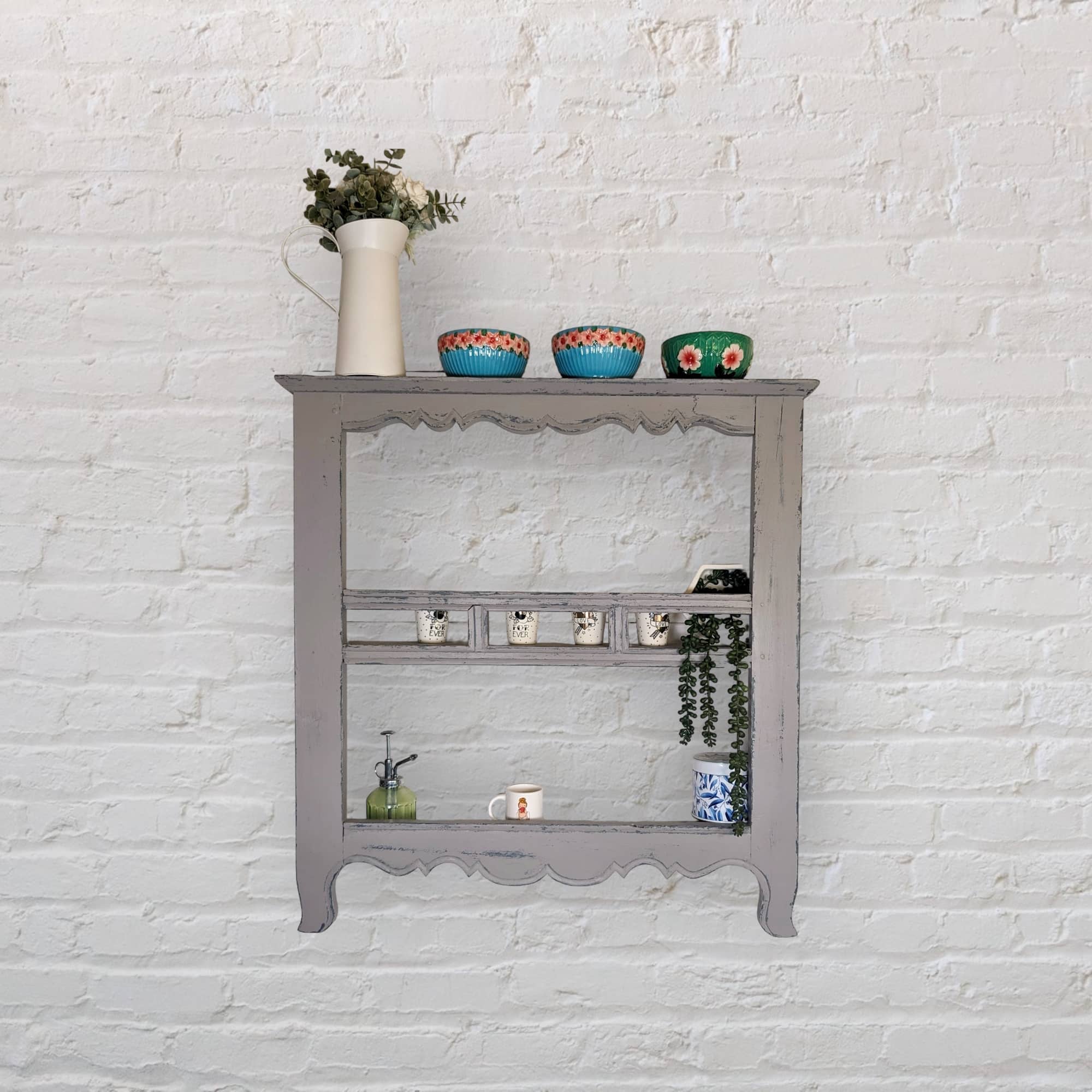 Étagère murale grise en bois massif – Élégance et robustesse pour votre intérieur