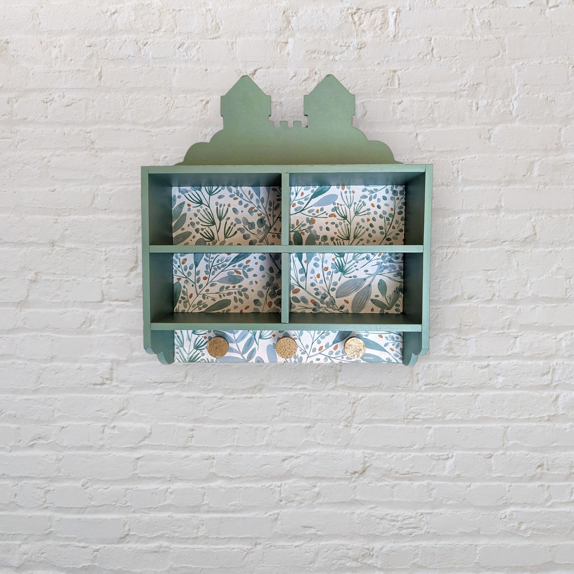 Étagère murale vert saulaie château en bois – Décoration artisanale unique