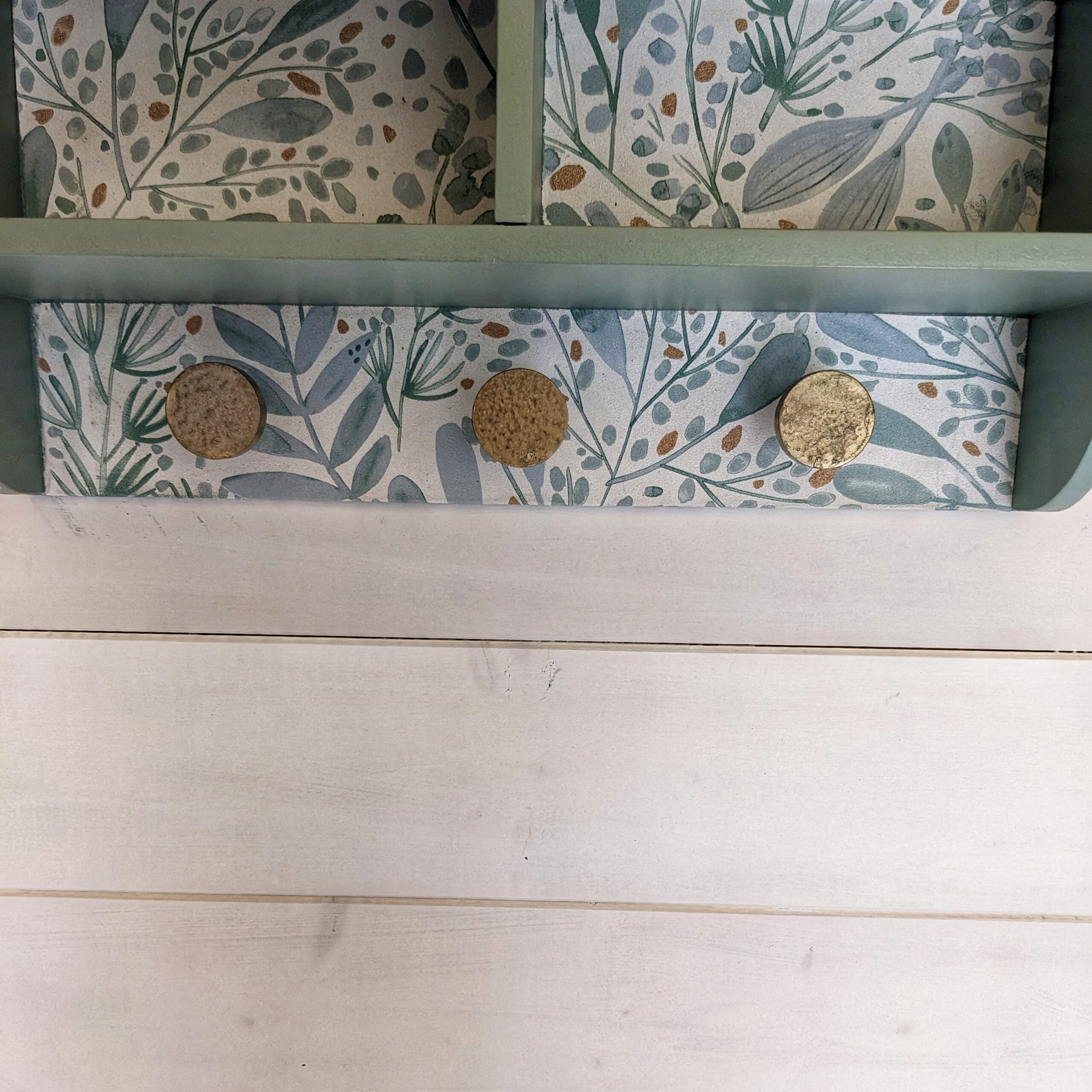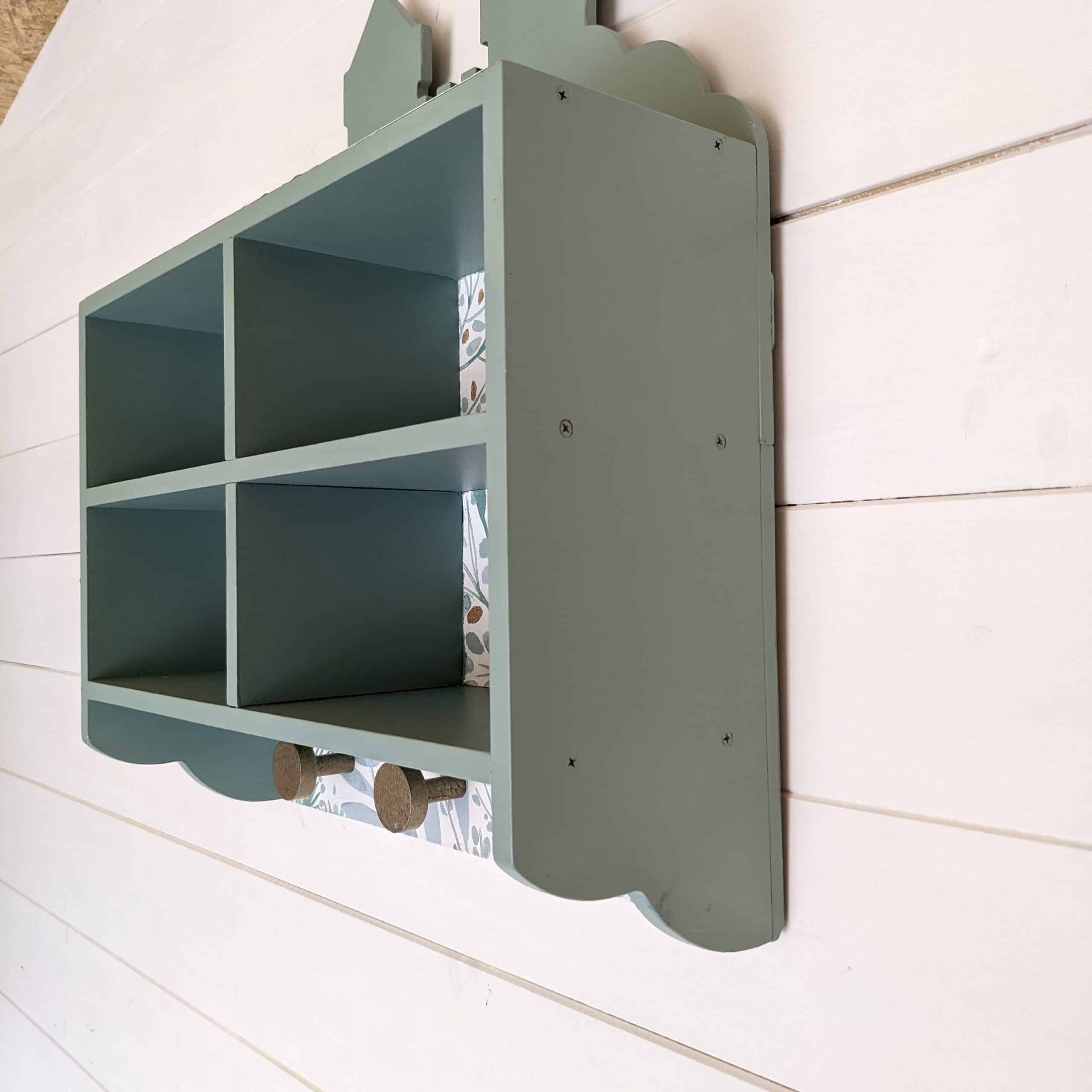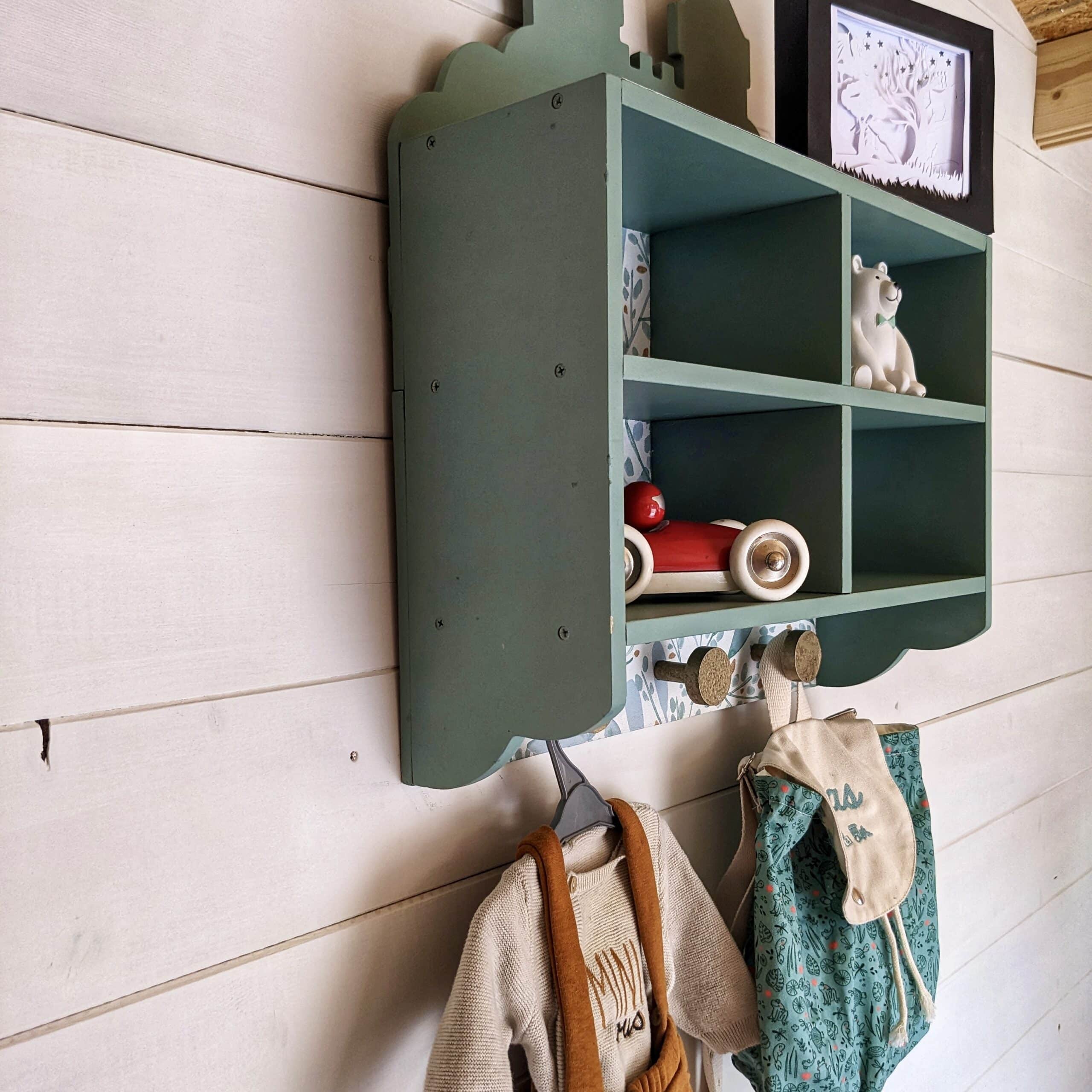 Étagère murale vert saulaie style château en bois – Élégance et fonctionnalité