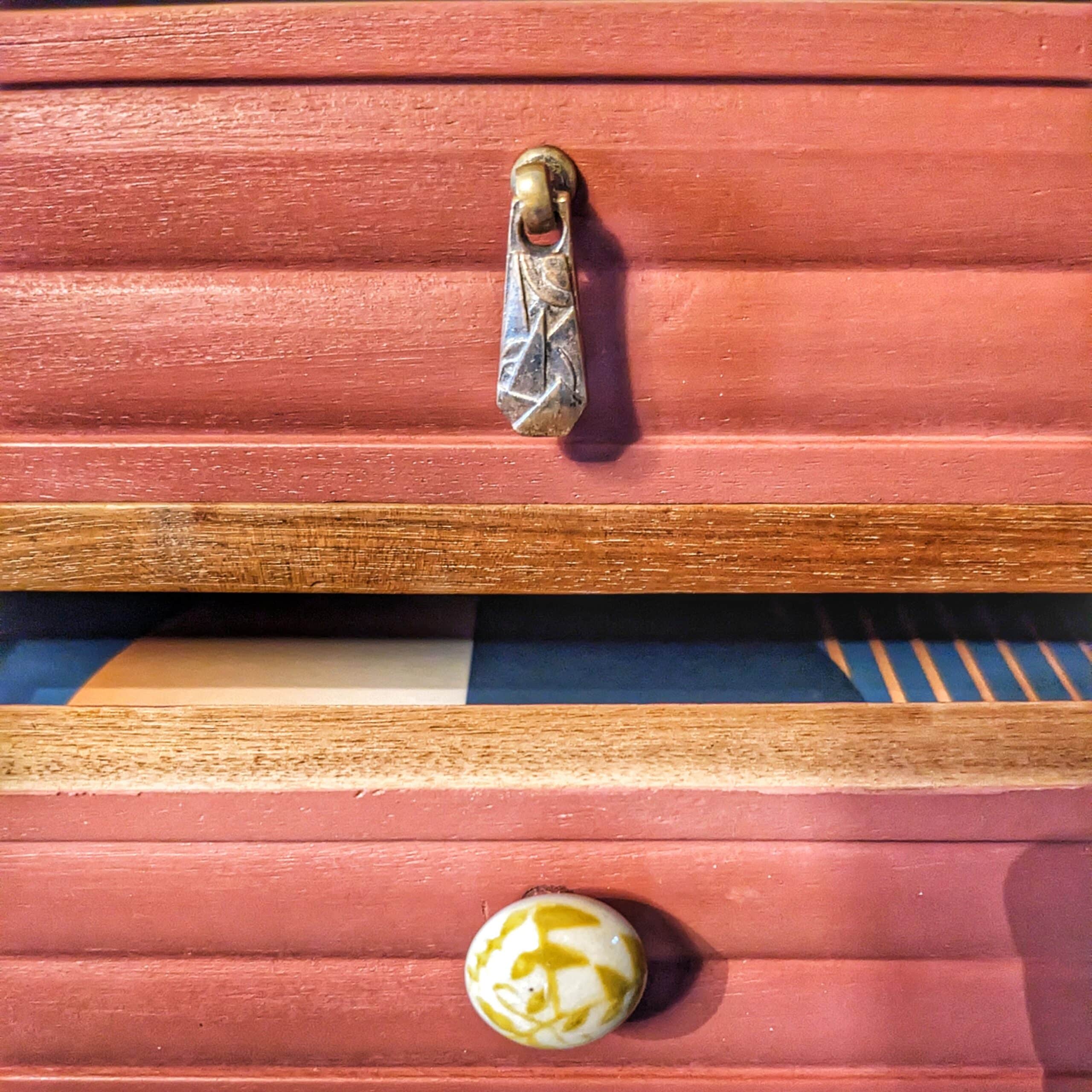 Meuble de rangement Art Déco terracotta sculpté – Pièce artisanale unique