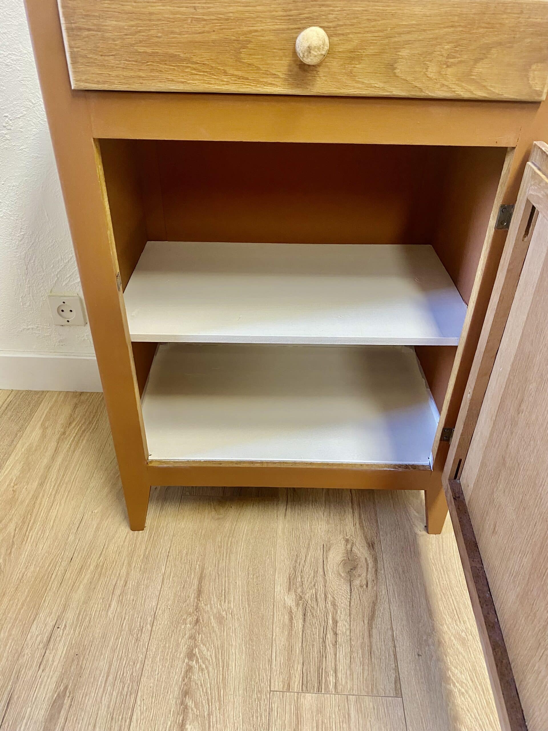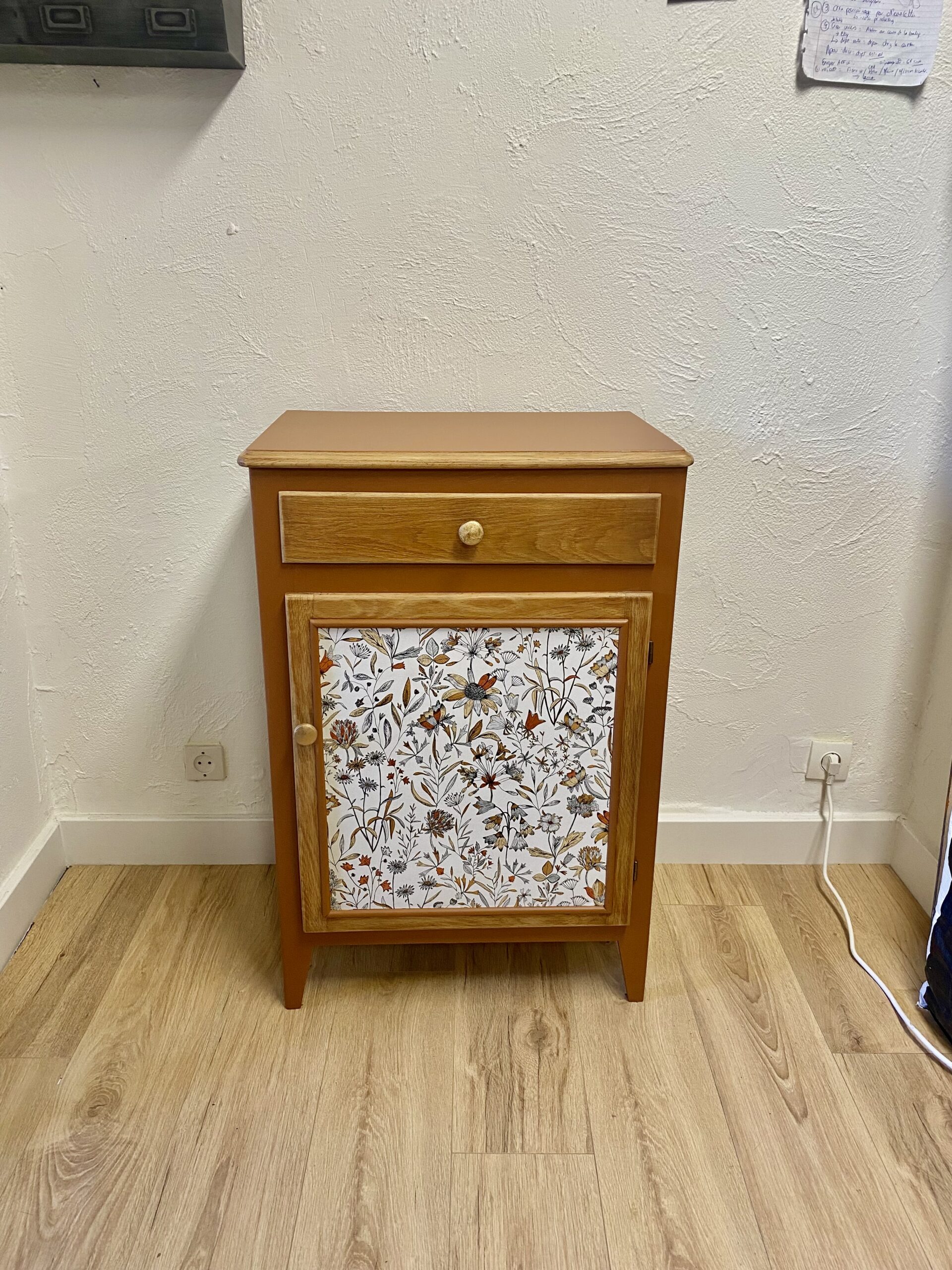 Un petit meuble mêlant la chaleur du terracotta et l’authenticité du bois brut, entièrement restauré et relooké à la main dans mon atelier de Castelginest. Une pièce unique, douce et lumineuse.