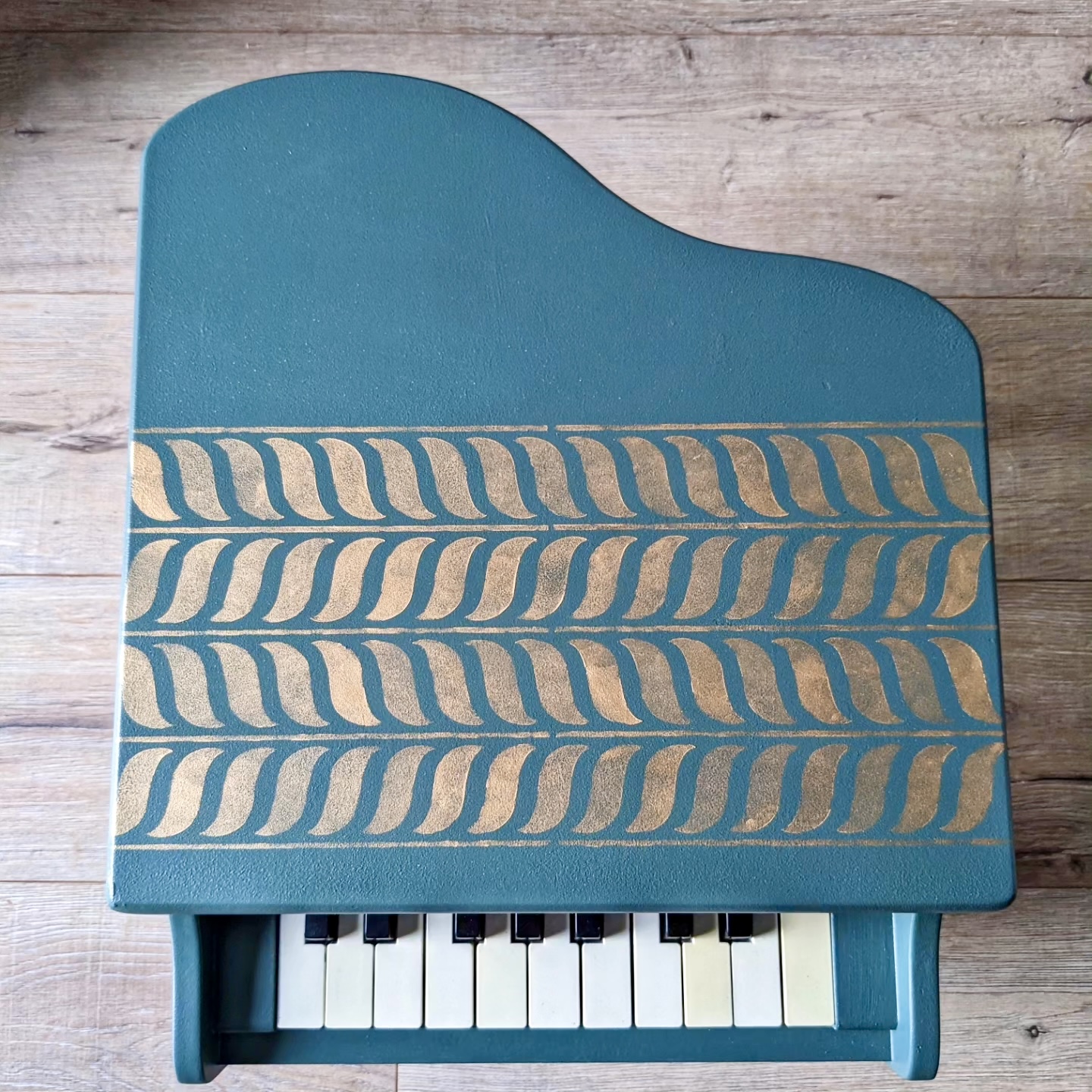 Piano enfant relooké à la main avec pochoir doré – Jouet musical élégant
