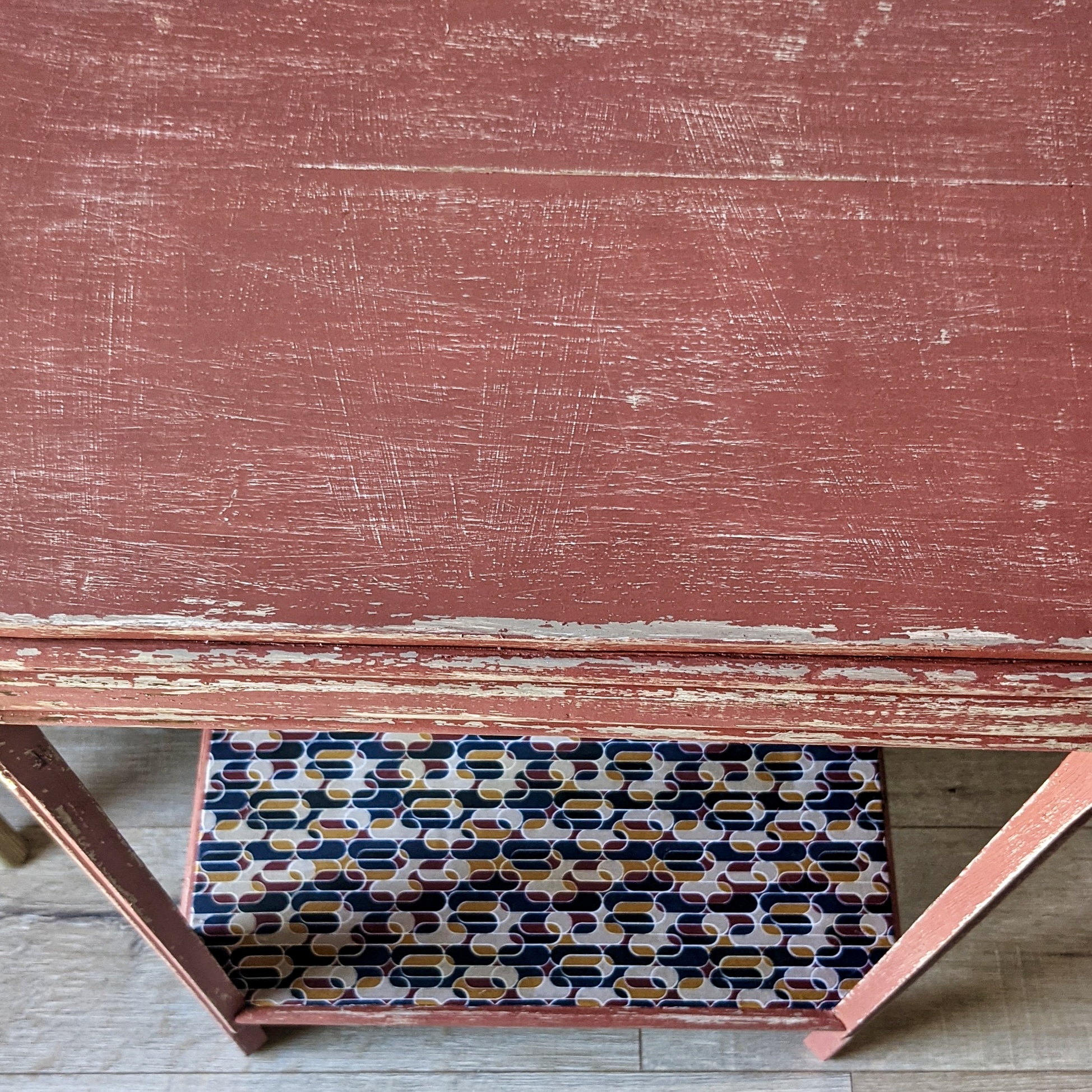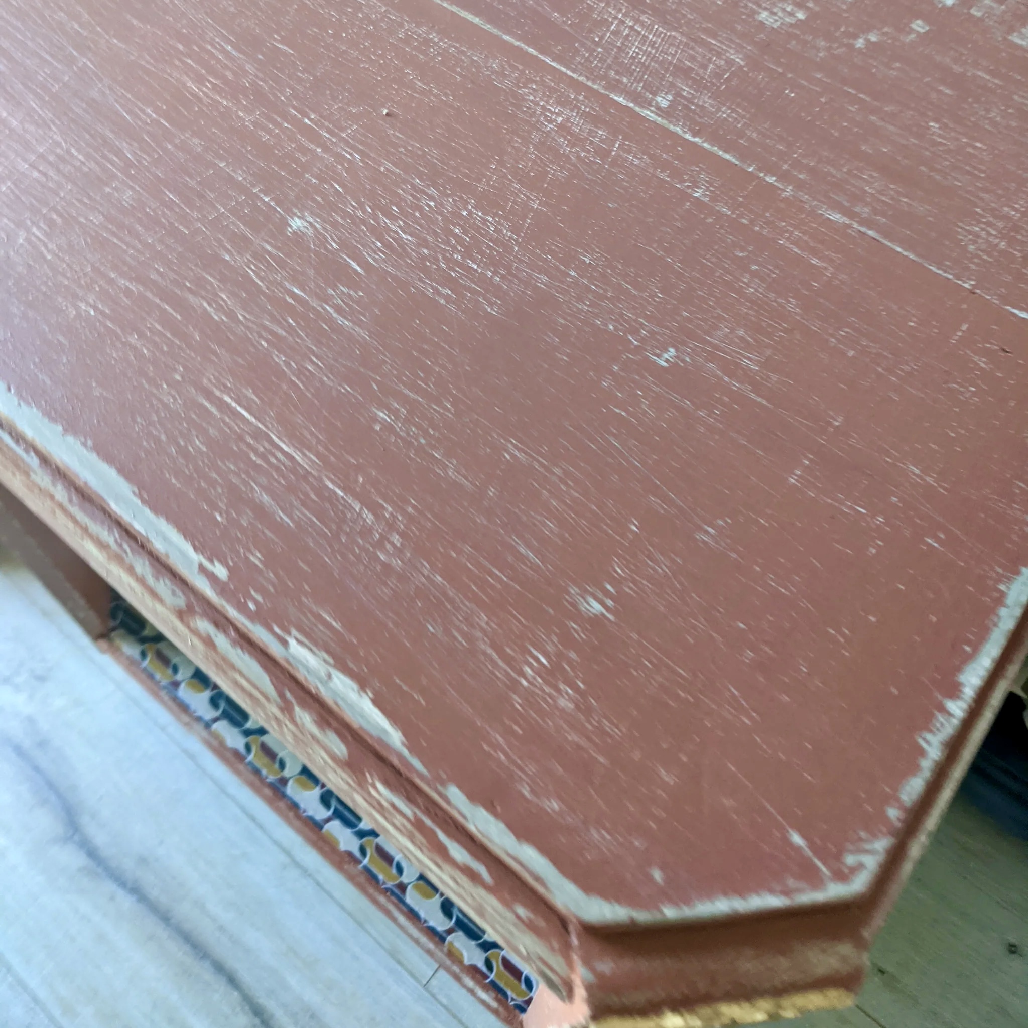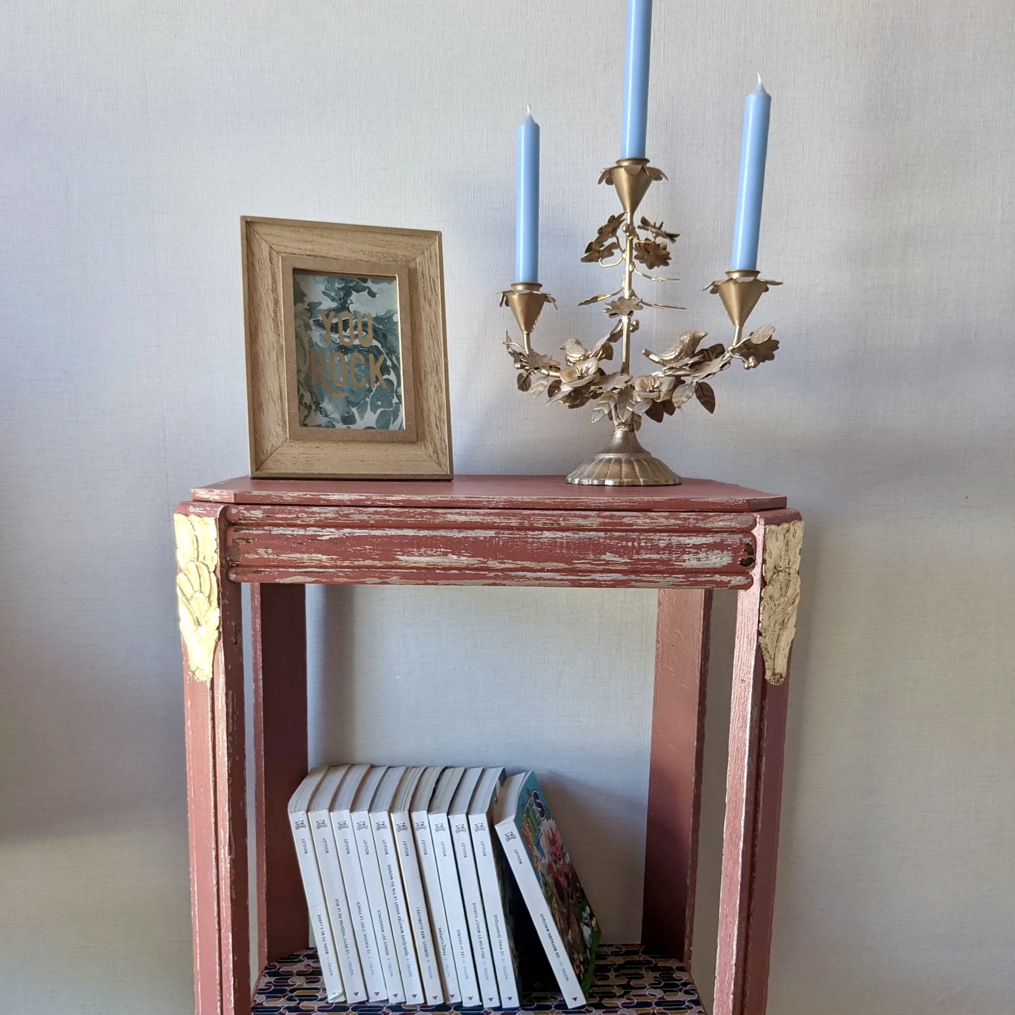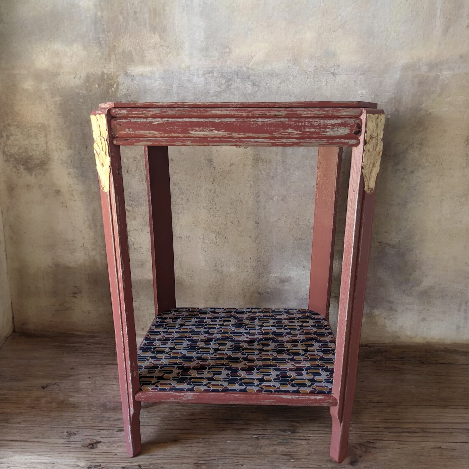 Table d’appoint Art Déco terracotta avec feuille d’or – Élégance vintage et raffinement