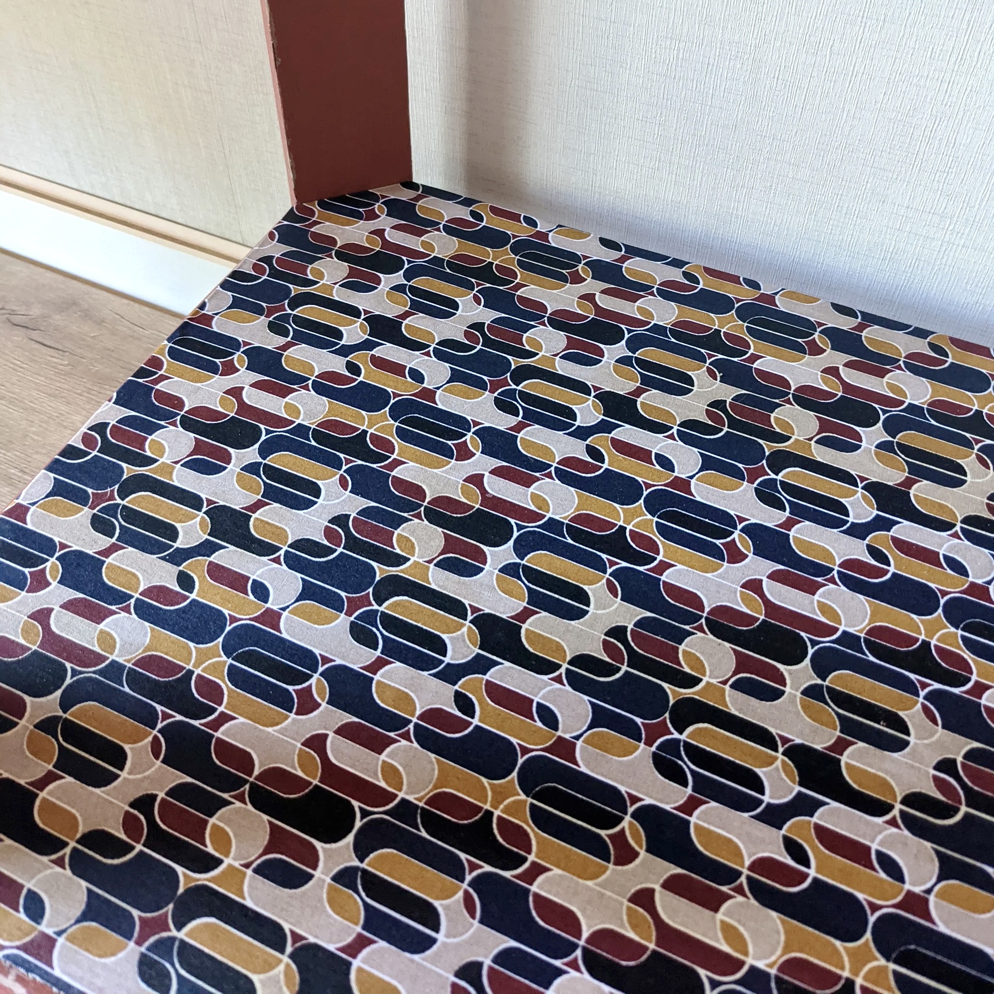 La tablette du bas est également habillée d’un tissu, protégé, ajoutant une dimension supplémentaire à son charme.