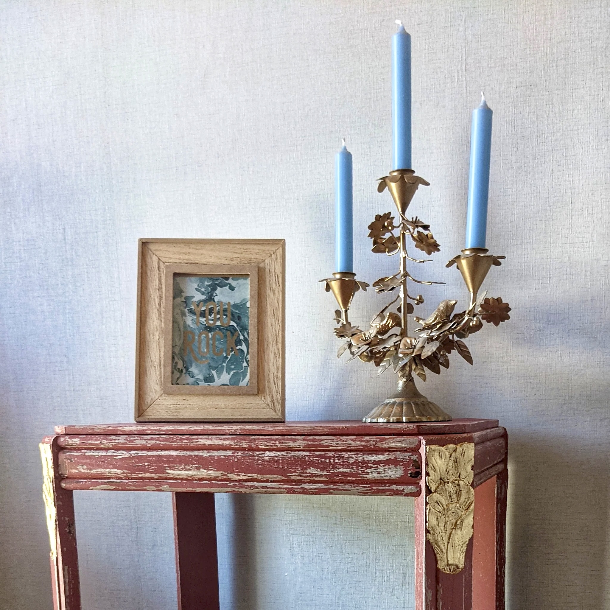 Salon sophistiqué : Placez cette table d’appoint près d’un canapé en velours ou d’un fauteuil pour un contraste élégant. Son effet vieilli et ses touches dorées se marieront parfaitement avec des meubles en bois sombre ou des objets décoratifs en métal.