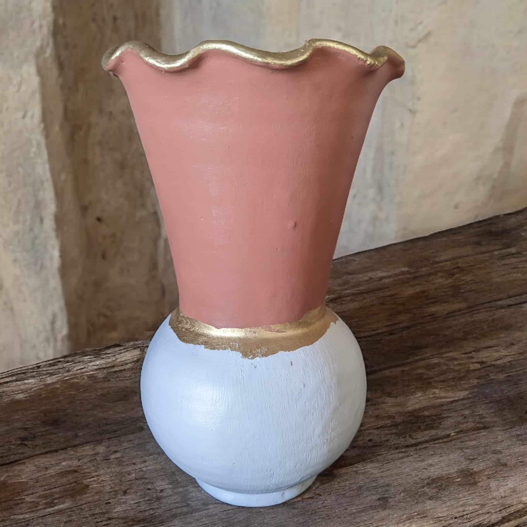 Un vase doux et élégant avec une finition dorée, peint à la main avec une peinture biosourcée française