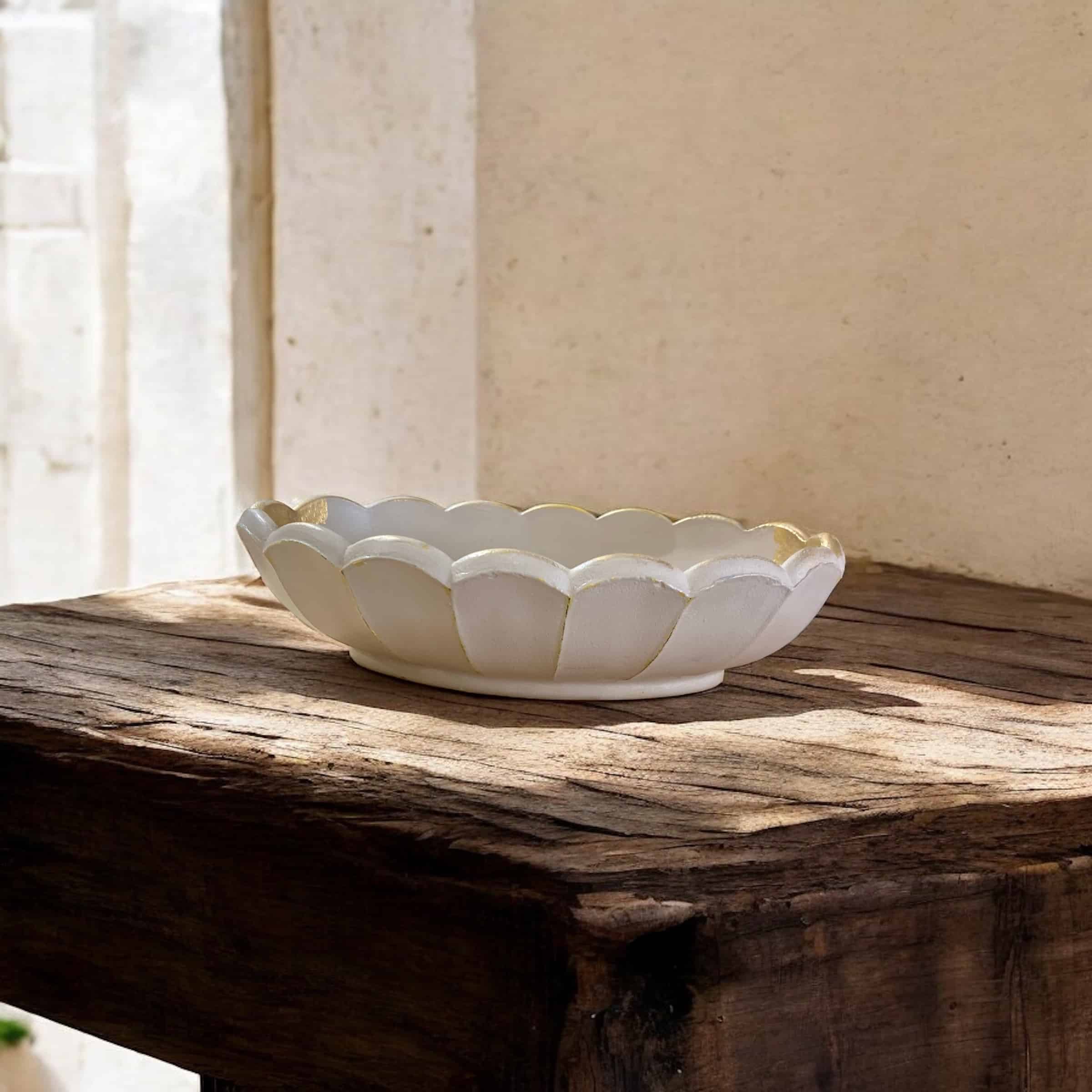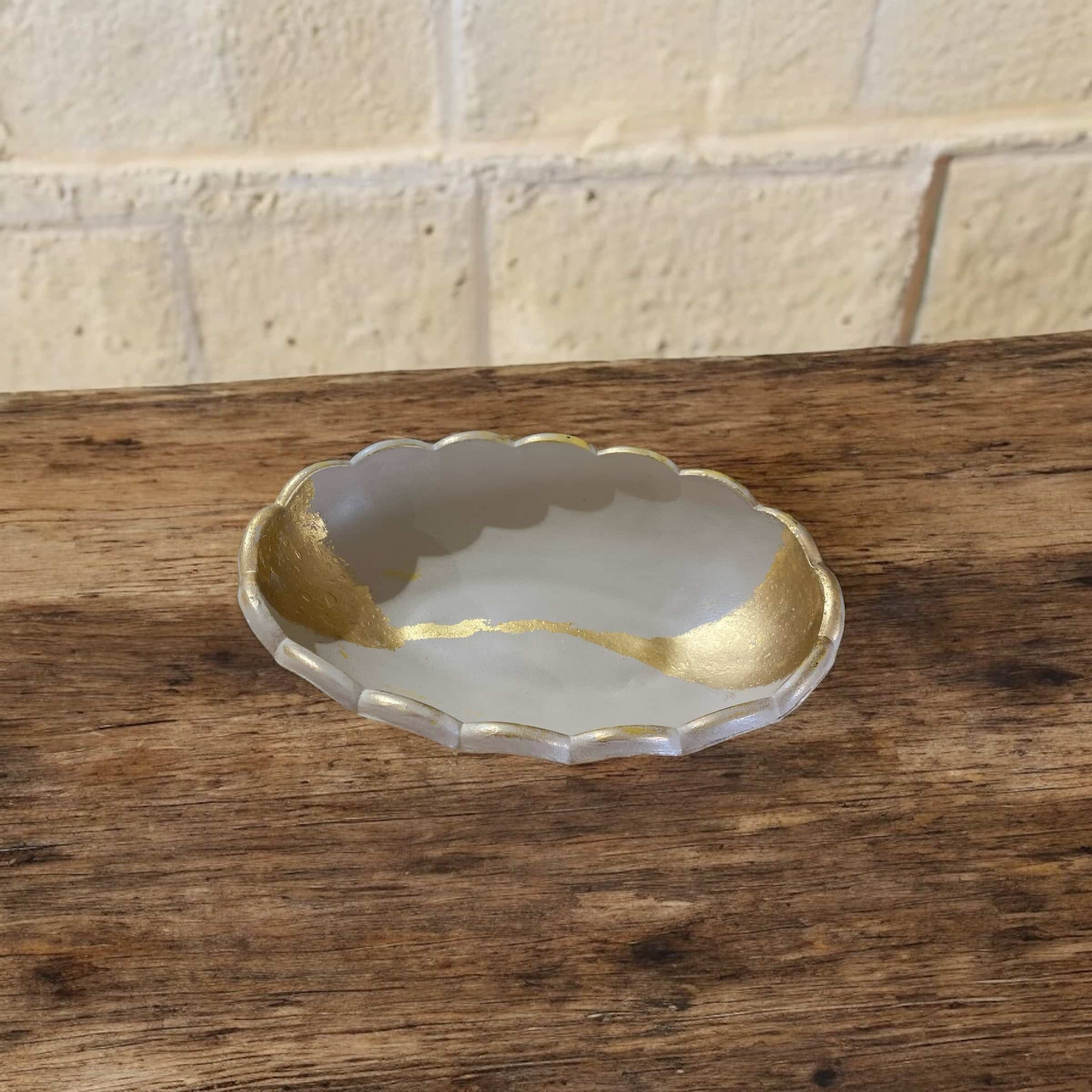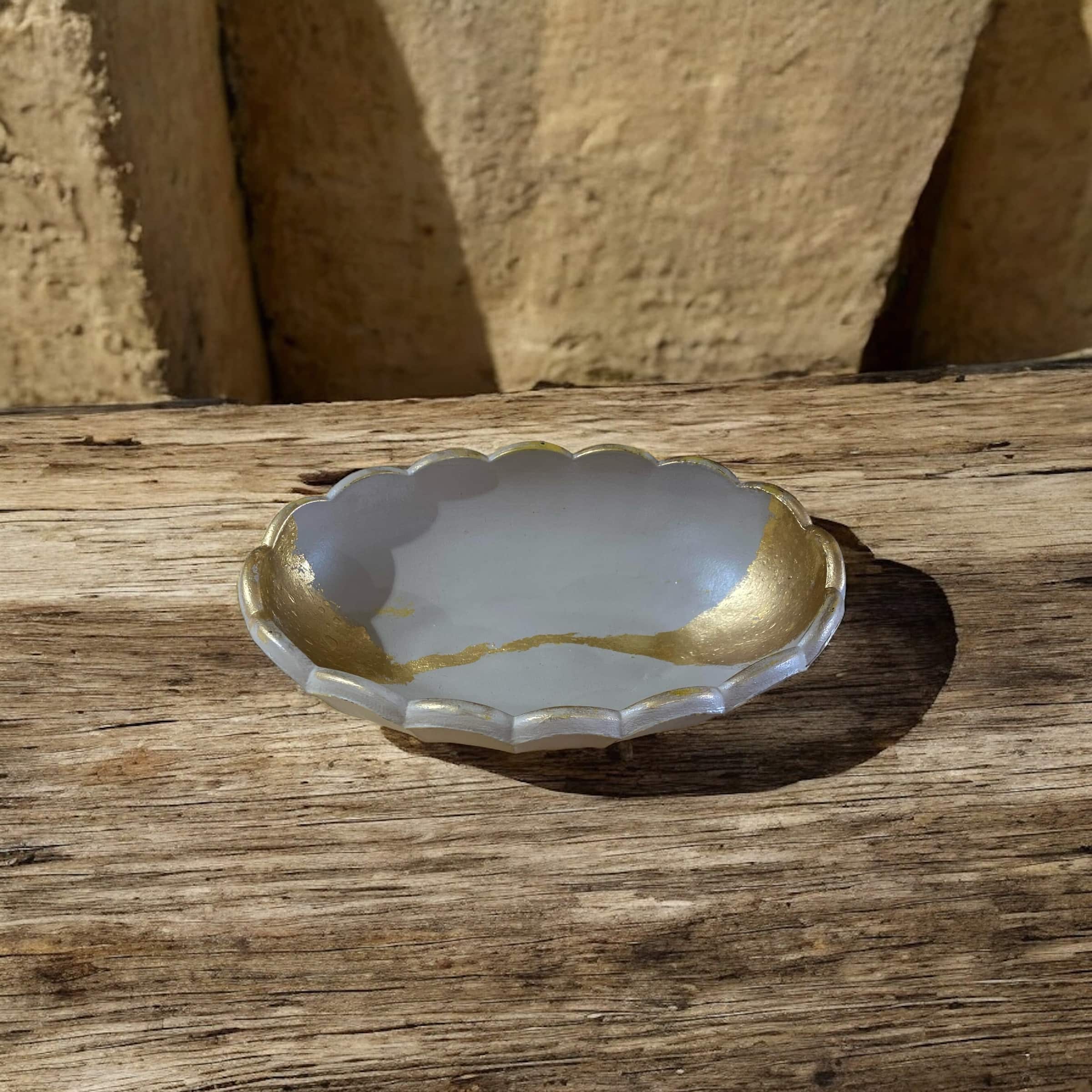 Vide-poche beige effet vieilli – Finition feuille d’or, pièce artisanale près de Toulouse