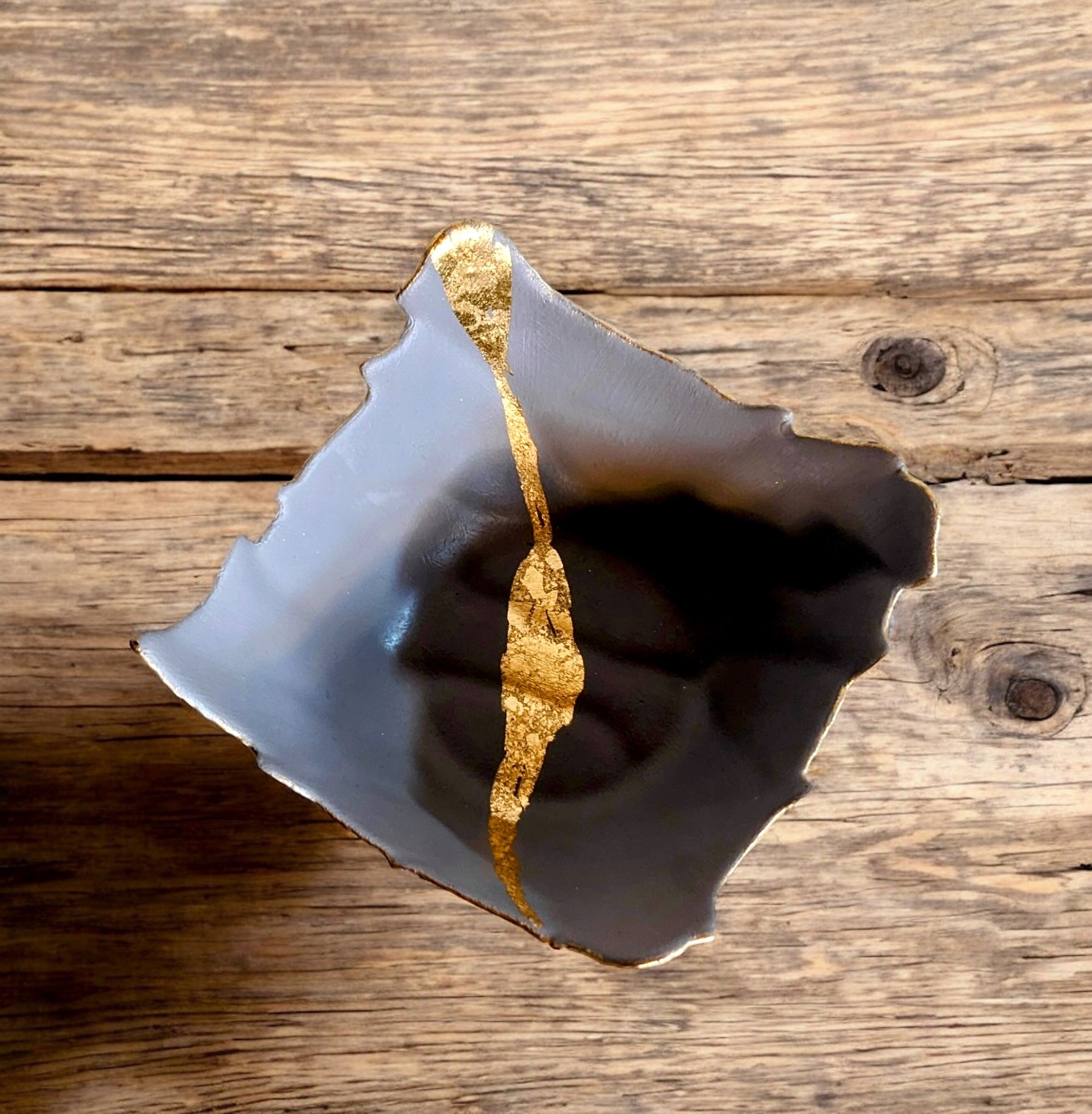 Vide-poche gris avec liseré à la feuille d’or – Pièce unique déco